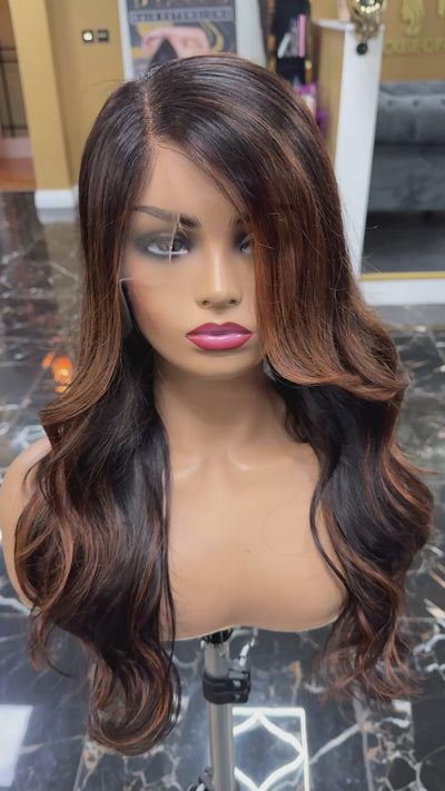 Bella 24" Copper Balayage 13x6 Straight Front Lace wig